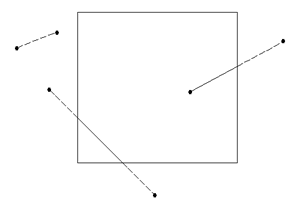 図 2.2: ビューポート クリッピング(clipping)とは、ウィンドの外部の図形を切り取り、内部のものだけ表示する処理である。線分の場合、線分の両端点がウィンドの内部かどうかを判定し、交差する場合は、ウィンドの枠との交点を求め、ウィンドの外部を切り捨てる(図2.3参照)。