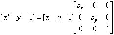 点[x y]は同次座標では[x y 1]と表現する。また、同次座標で点[X Y W]は普通の座標系では