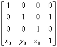 3次元の場合の変換行列を4×4に拡張すればよい。例えば、移動量[ ]のときの平行移動の変換行列は、