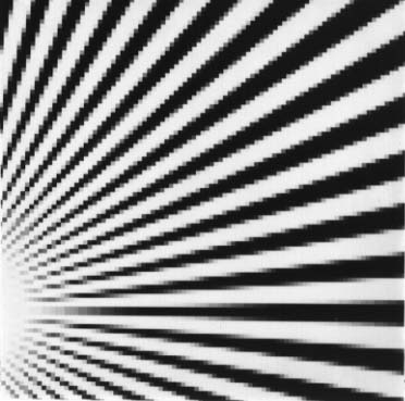 ![]() (a) (b) (2) 細長い線が周期的に並んだ縞模様が表示された場合モアレが生じる(図6.2(a)参照)。