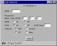 ・平面図、透視図のグリッド間隔の変更、透視図の背景色やグリッド・座標軸の表示のON/OFF、座標軸の長さ、メタボールの表示方法の選択を行なうことが できます。