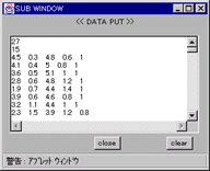 データの読み込みをする場合は、まずclearボタンを押してテキストエリアに表示されているデータを 消去し、次にテキストエリアの先頭に読み込むデータをコピーしてから readボタンを押してください。