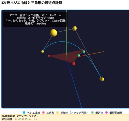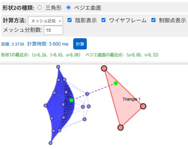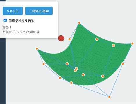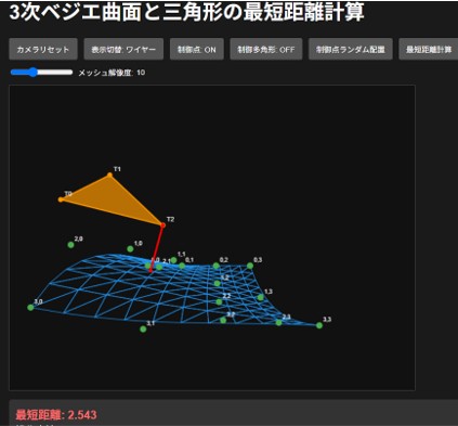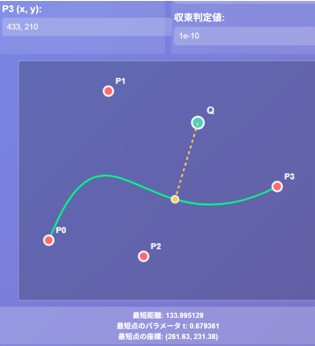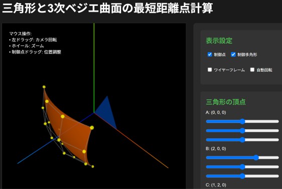 程度。 曲線の例;「3次のベジエ曲線を描くコードを JavaScriptで書け。」 次に「制御点と制御多角形も描け。」 次に「次数を2から6までsliderで指定できるようにし、制御点はマウスで移 動できるようにしてください」とプロンプトを入力。 ゲームの例;「シューティングゲームを JavaScriptで書け」、次に「操作方法をHTMLファイルに書け」と簡単 結果はhtmlにJavaScriptを含んで出力される。〇〇.htmlファイルを作成しクリックすると実行される。あるいはhtmlと JavaScriptファイルを別に出力される。htmlにjsファイルを呼ぶように記述されてるので、htmlファイルクリックすると実行される。 |